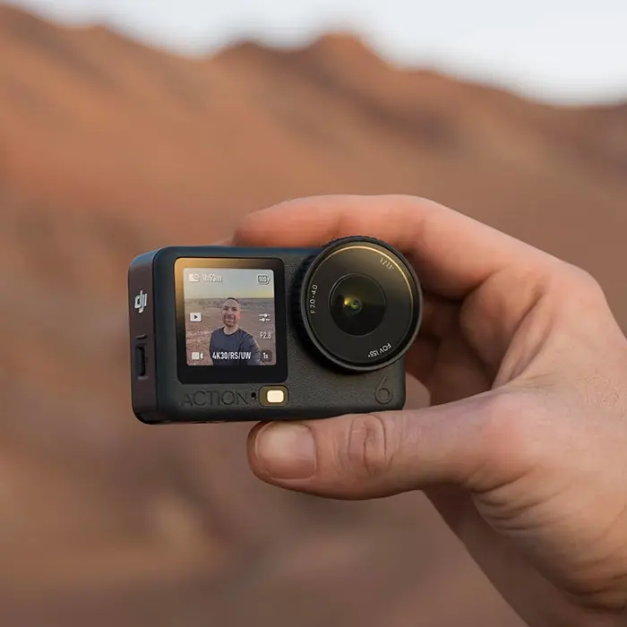 The DJI Osmo Action 6 Essential Combo is built around a 1/1.1-inch square sensor and a variable aperture system ranging from f/2.0 to f/4.0. Combined with 4K video capability and a cold-resistant design, it is engineered for real-world usability rather than just technical specifications on paper. With up to 4 hours of battery life in the Essential Combo configuration, it is ideal for long shooting sessions without constant charging interruptions.